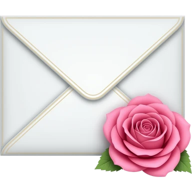 une enveloppe blanche avec un rose de couleur rose à coté. La vue est en 3/4 Ajoute subtilité pour renforcer l'impression de luxe de la scène. L'ensemble est isolée sur un fond blanc. emoji