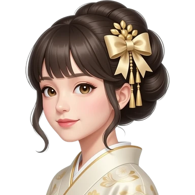 une femme avec une coiffure japonaise kawaii. La vue est en 3/4 Ajoute subtilité pour renforcer l'impression de luxe de la scène. L'ensemble est isolée sur un fond blanc. emoji