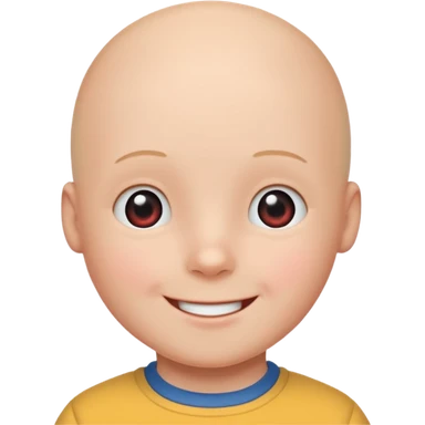 Caillou character in GoAnimate style, simple cartoon look, bald child with yellow shirt, smiling emoji