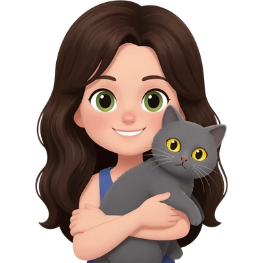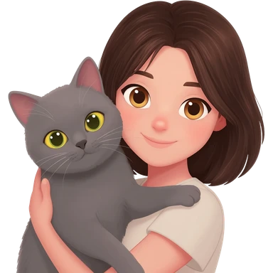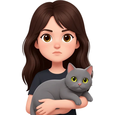 Chica peli castaña tomando café con un gato gris en la otra mano emoji