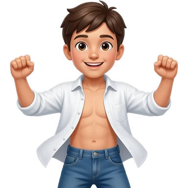 Un chico bailando con camisa blanca, manga larga metida por dentro abierta hasta el ombligo emoji