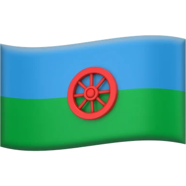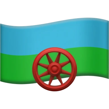 drapeau bande verte en desous bande bleu clair au dessus et roue de roulotte rouge au milieu emoji