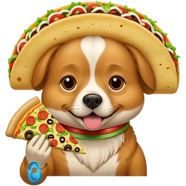 Un chien qui en tacos et qui mange une pizza emoji