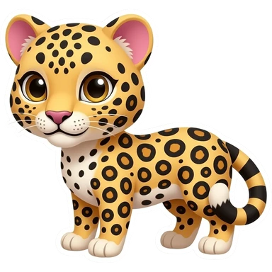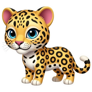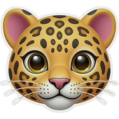 Un sticker de leopardo con un lado rosado en unas de sus orejas y que tenga una mirada coqueta emoji