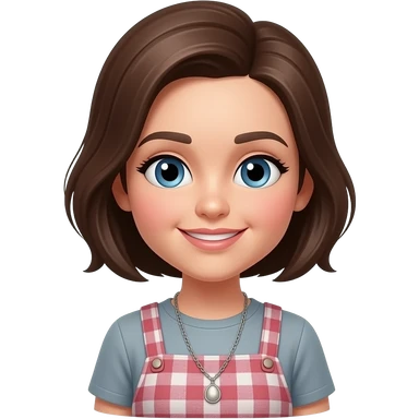 UN EMOJI DE COSTURA MODERNA OJOS AZULES CHICA CASTAÑA PELO CORTO Y RIZADO emoji | AI Emoji Generator