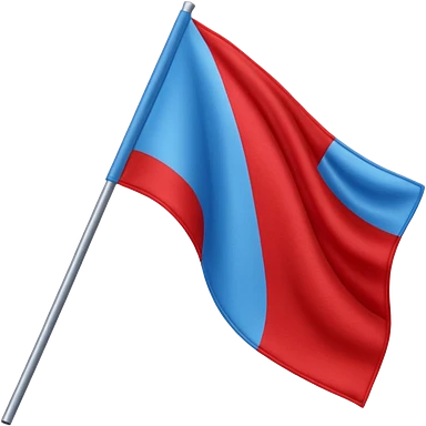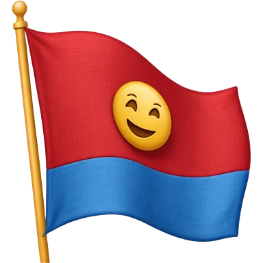 Un emoji drapeau rectangulaire avec la moitié du haut en bleu et l’autre moitié du bas en vert avec une roue de roulotte rouge au centre assez grande que la roue emoji | AI Emoji Generator