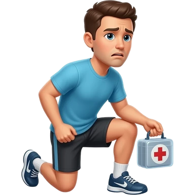 hazme un entrenador con ropa de esportista agachado i con un botiquin i que este preocupado i mirando para un lado i que el cuerpo este mirando a la derecha emoji