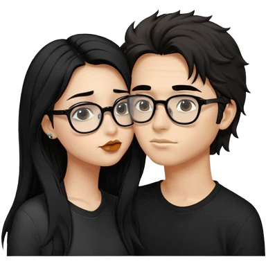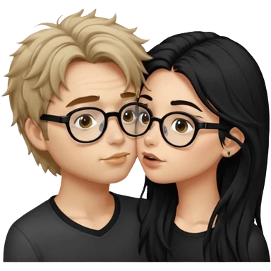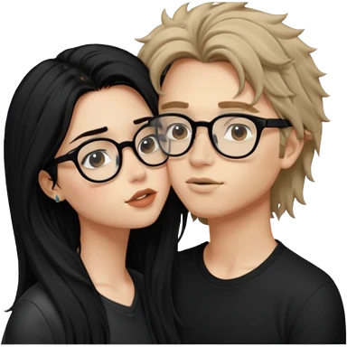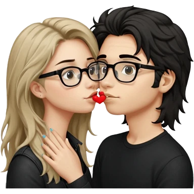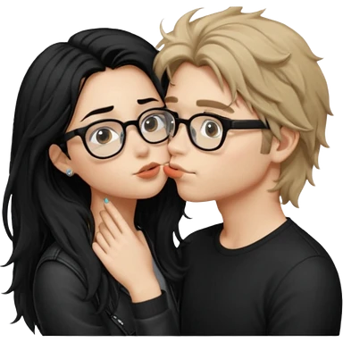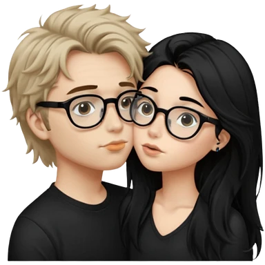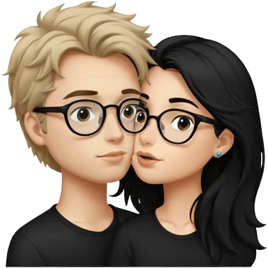 Un garçon avec les cheveux brin très clair ébouriffés, qui embrasse une fille avec les cheveux noir long et lisse , qui a des traits d’eye-liner et des lunettes noir avec un piercing au nez emoji | AI Emoji Generator