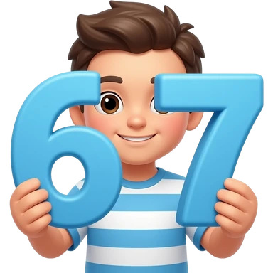 Un emoji avec un garçon qui a dans les mains le nombre 67 en bleu emoji