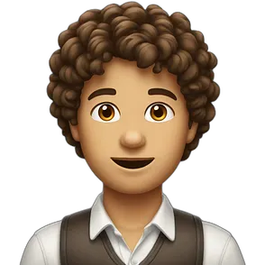 Garçon cheveux bouclés pas trop de volume avec la couleur brun et les yeux verts couleur de peau blanc emoji