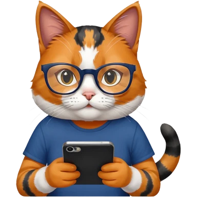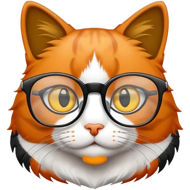 un gato de tres colores naranja, negro y blanco con gafas de leer emoji | AI Emoji Generator