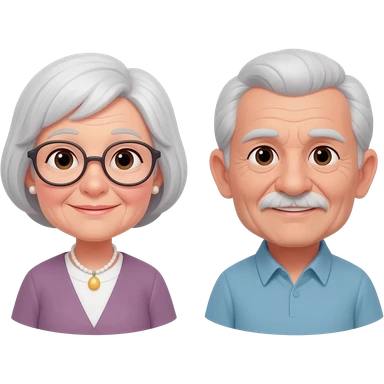 une grand mère avec cheveux blanc, peau blanche avec lunettes et un grand père cheveux poivre et sel, peau blanche emoji