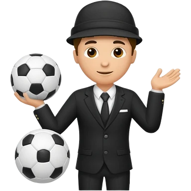 Director tecnico de futbol, con un traje negro, gorra y un balon de futbol bajo el brazo emoji