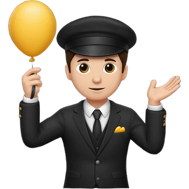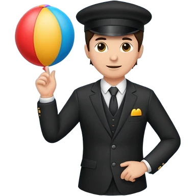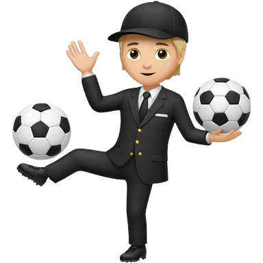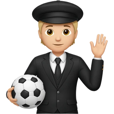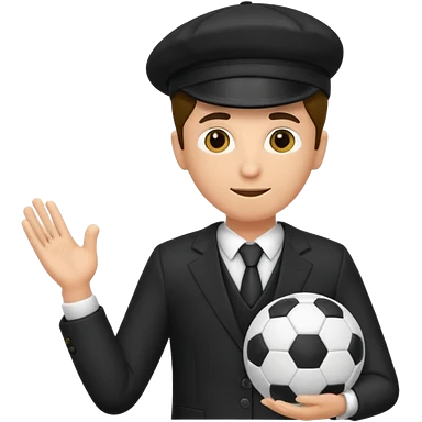 Director tecnico con un traje negro, gorra y un balon bajo el brazo emoji