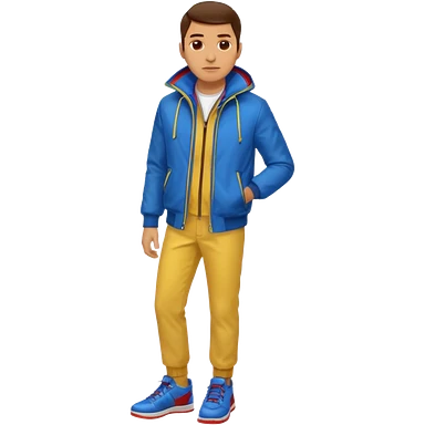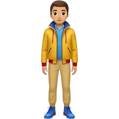 un hombre con: una chaqueta amarilla, pantalones rojos y zapatos azules. emoji | AI Emoji Generator