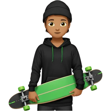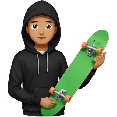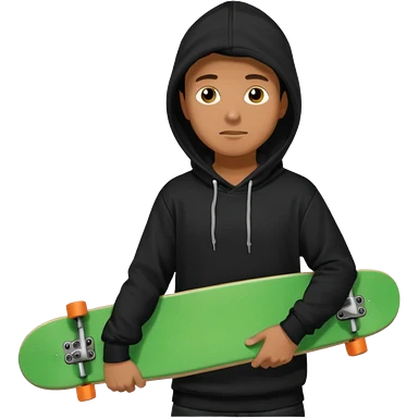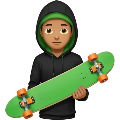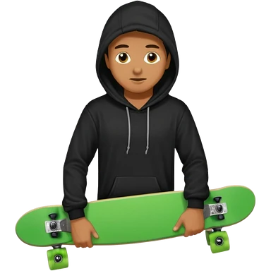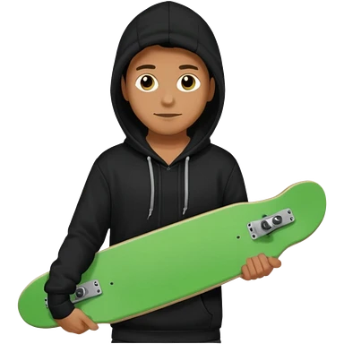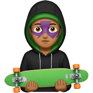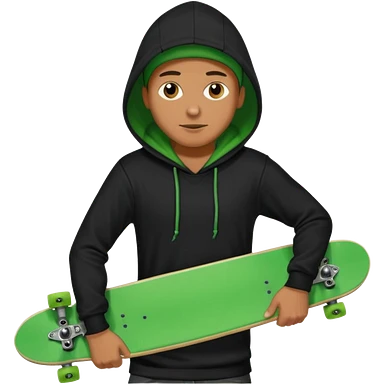 Un hombre sorteando con camisa negra encapuchado y tabla verde emoji