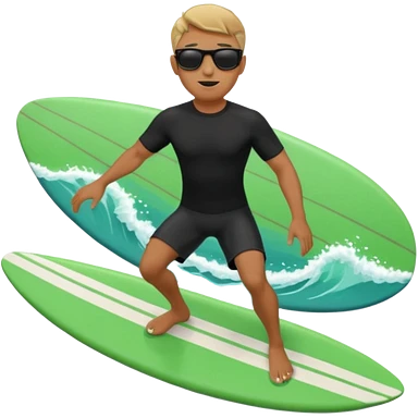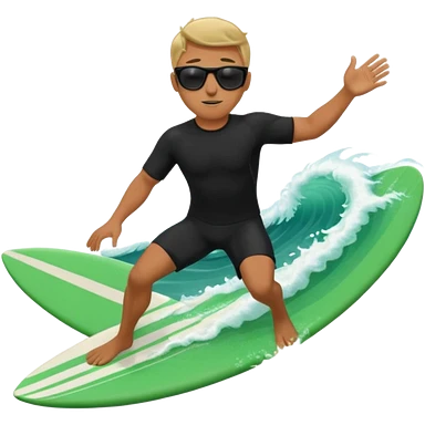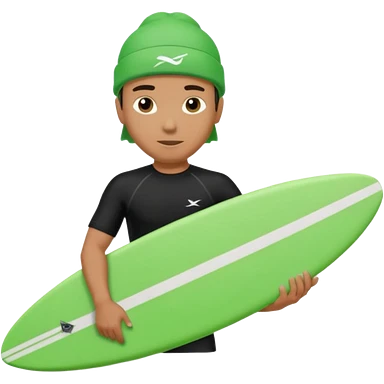 Un hombre sorteando con camisa negra con gorra para nadar y tabla verde emoji | AI Emoji Generator