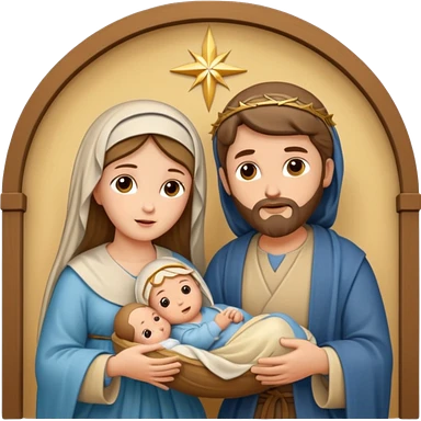 Pesebre con la virgen María San José y el niño Jesús emoji