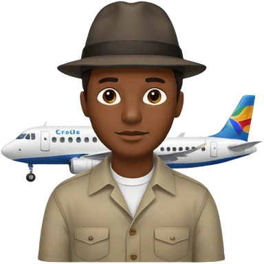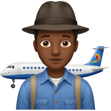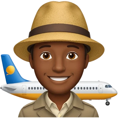 Visage homme créole réunionnais avec chapeau arrive avion emoji