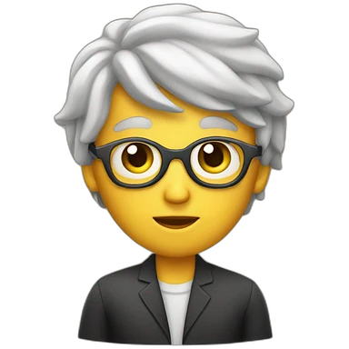 une fille avec de long cheveux noir lisse , des yeux marron , et avec des lunette (en forme de carrer un peu déformé) assez grosse comparer a ça tête , portant un pull blanc emoji