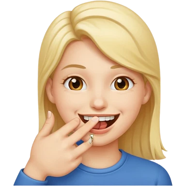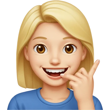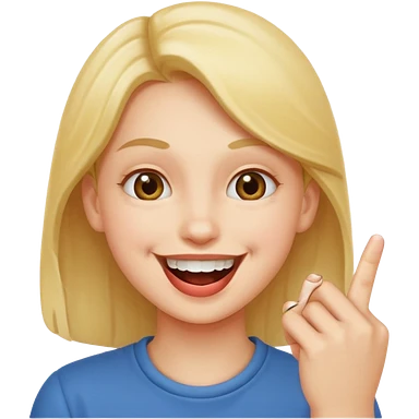 FEMME FRISÉ 60 ANS CHEVEUX BLON FRISÉ LONG SOURIANTE AVEC CHANDAIL BLEU, YEUX BRUN ET UN PINCEAU À LA MAIN LA MAIN AVEC 5 DOIGT SEULEMENT ET LUNETTE emoji