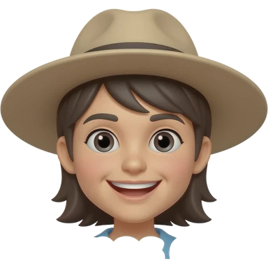 Crea un emoji de una cara DE UNA chica con sombrero de vaquero cabell cobrizo y ojos azules emoji