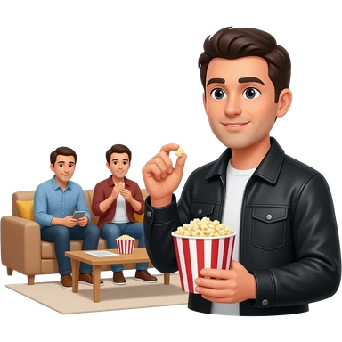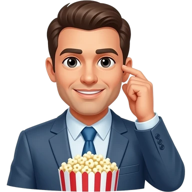 Un homme qui écoute des personnes débattre avec attention en mangeant du pop corn emoji