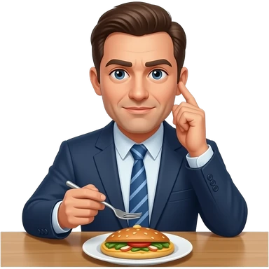 Un homme qui écoute des personnes débattre avec attention en mangeant des ships emoji