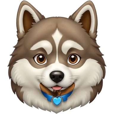 Une fille aux cheveux brun foncé fais un bisous sur la joue a un Husky doré clair emoji