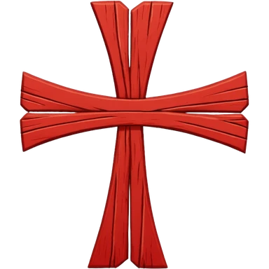 Consiste en una cruz de San Andrés ( X 𝑋 ) de color rojo, con contornos irregulares que representan los nudos de las ramas cortadas (a menudo representados como troncos "al natural" o nudosos). emoji