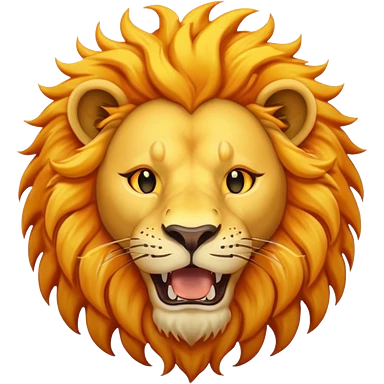 un lion avec la bouche ouverte. Au-dessus du lion, il y a un soleil. En plus, il y a des éclairs d’électricité qui se mêlent à la crinière du lion, comme s’il était chargé d’énergie. Le lion est vue de faceemoji