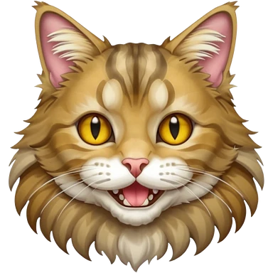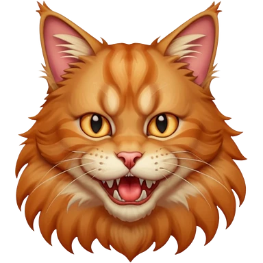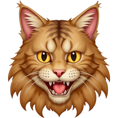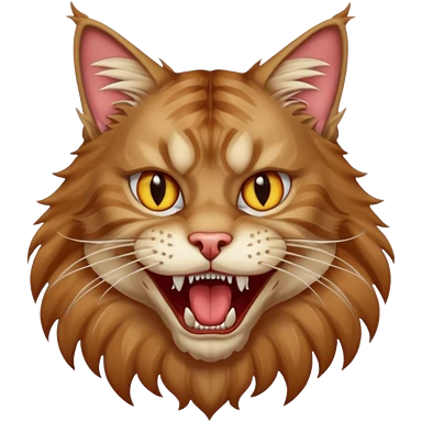 Realizza un gatto di razza maine coon con denti affilatissimi e cattivissimo emoji