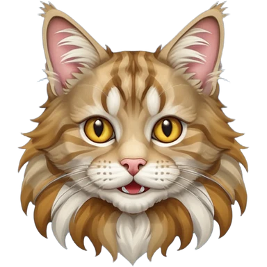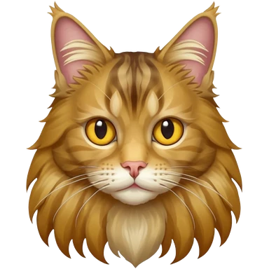 je veux un emoji chat main coon marron à poil long avec les yeux vert jaunes emoji