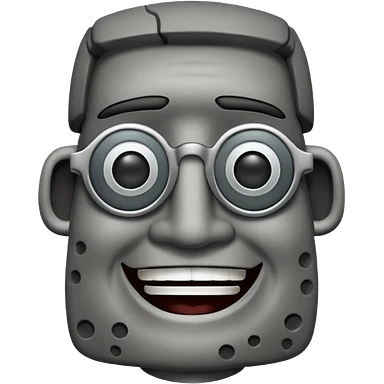 Un moai tranquilo con unos lentes y una sonrisa emoji