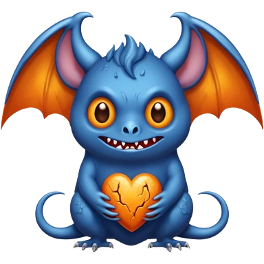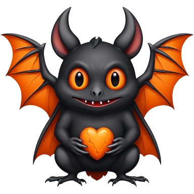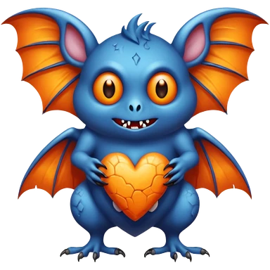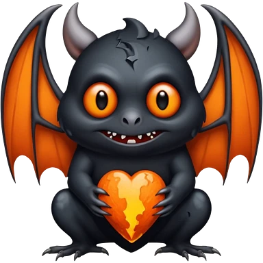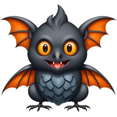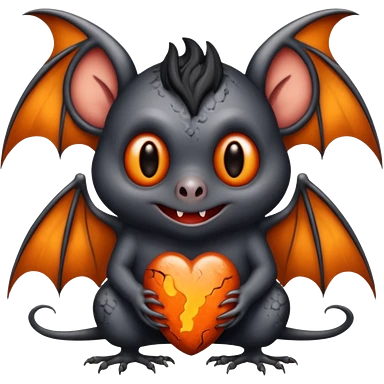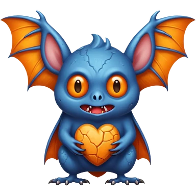 Monstre a corp craquelé fait de lave avec des ailes de chauve-souris et un tête de pierre carbonisé avec une mâchoire carré emoji