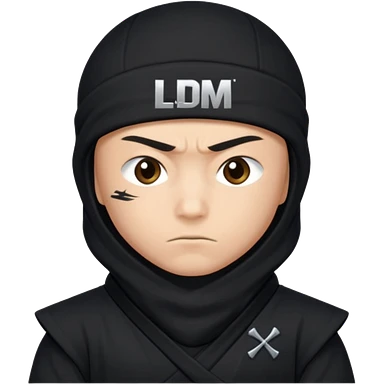 un ninja con una remera negra que diga LDM con letras blancas emoji | AI Emoji Generator