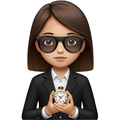 Un niño con pelo lacio color castaño,con lentes de sol negros y un reloj en la mano ,pero que el lente sea más oscuro emoji