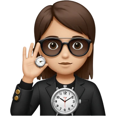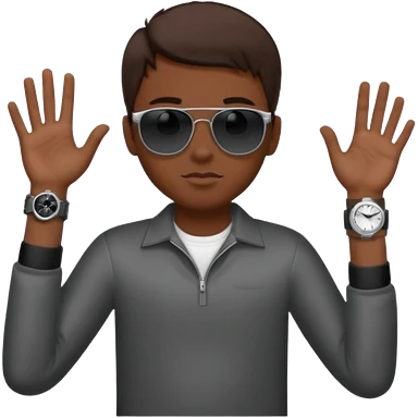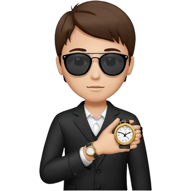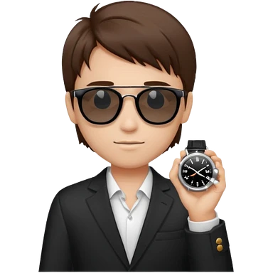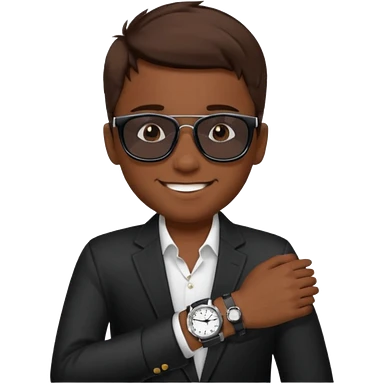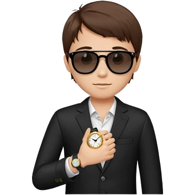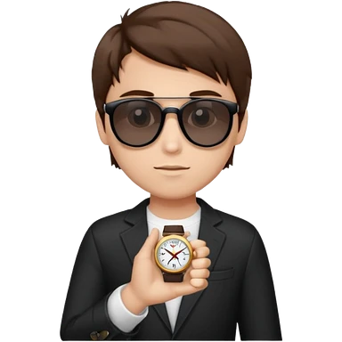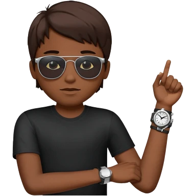 Un niño con pelo lacio color castaño,con lentes de sol negros y un reloj en la mano ,pero que el lente sea más oscuro emoji | AI Emoji Generator