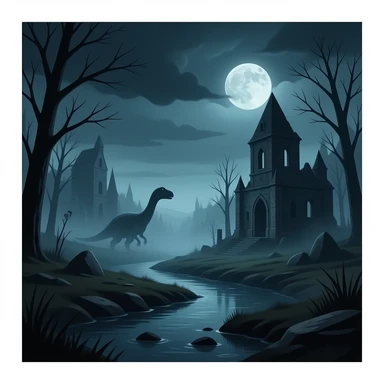 hacme un paisaje sin dinosaurios y sin rio el paisaje es terror emoji