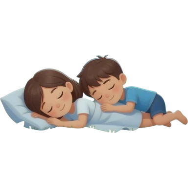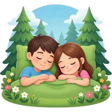 un niño y una niña que son hermanos durmiendo en el bosque emoji