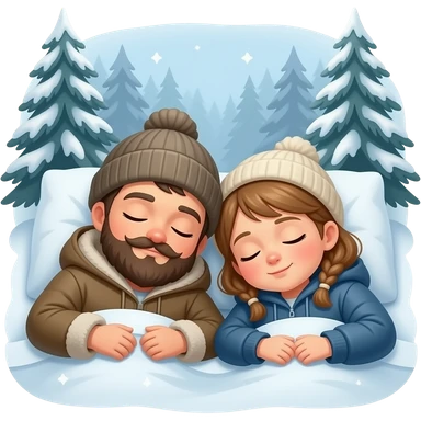 un niño y una niña que son hermanos durmiendo con frio en el bosque emoji