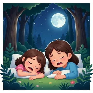un niño y una niña que son hermanos durmiendo en el bosque, estan asustados y es de noche duermen en el suelo sin nada! emoji | AI Emoji Generator