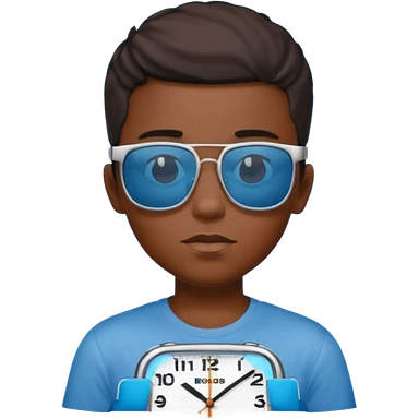 Un garçon noir avec des lunettes de soleil un peu bleu avec un cadran plutôt carré et SANS QU’ON VOIT SES YEUX. Et au dessus de sa tête il y a écrit BOUSs on dois pas voir ses yeux emoji