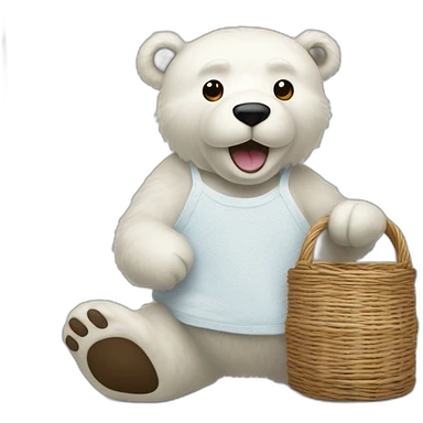 Un ours blanc, full body qui repasse du linge avec un fer à repasser emoji