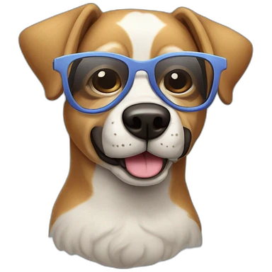 Un perro blanco con manchas marrones con gafas de sol emoji