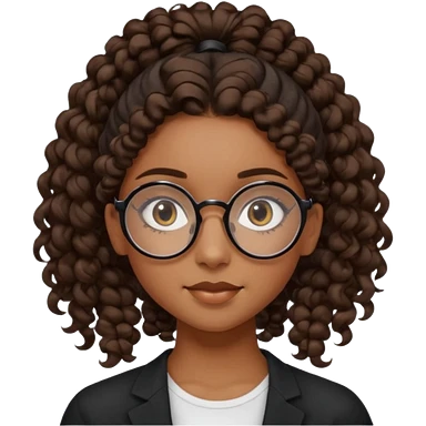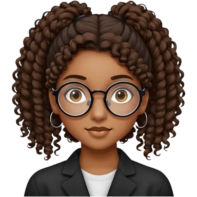 chica pelo negro pelo rizado con un moño alto con gafas y pero recogido con un moño emoji