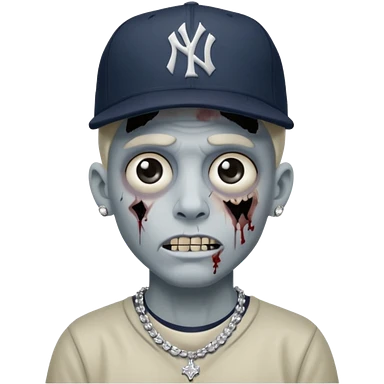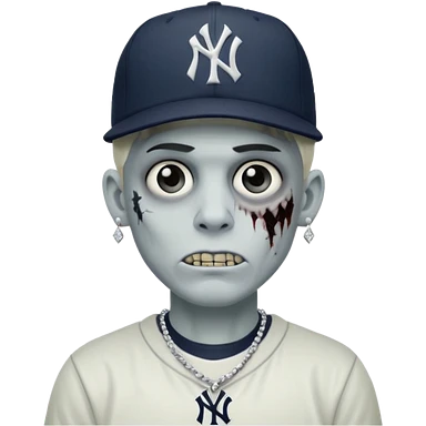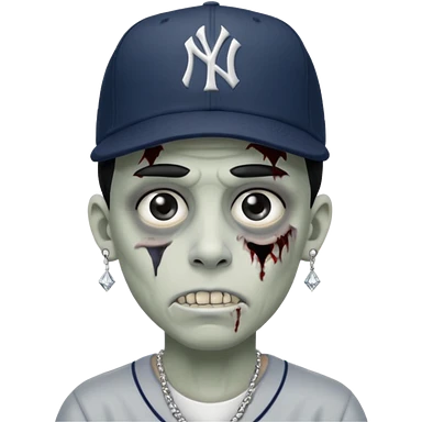 Hazme un zombie con barba en la barbilla el emoji que esté en blanco y negro osea la foto que tenga aretes pequeños una gorra volteada de los new York yankee y una cadena de diamantes que diga W emoji