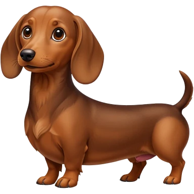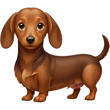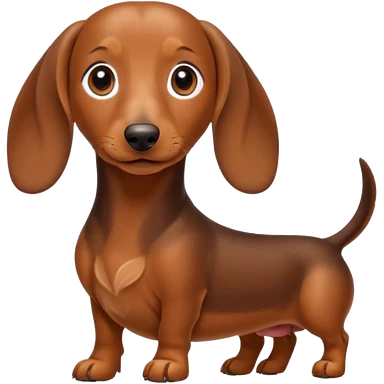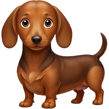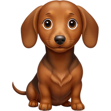 Un perro salchicha de color marrón oscuro con manchas blancas y ojos marrones emoji