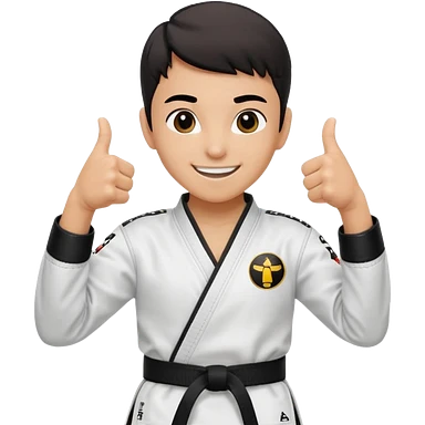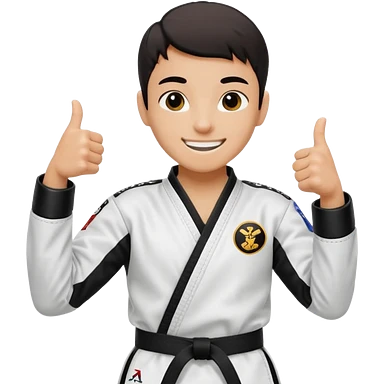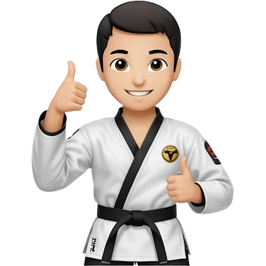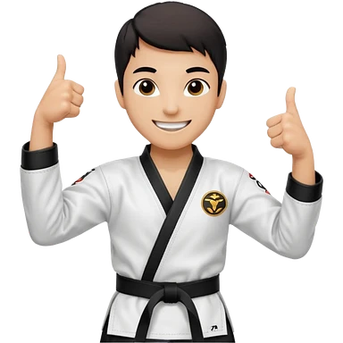 Perfecto pero el uniforme debe ser de taekwondo de ATA cinturón negro con un logo de mambo negra y realizando este gesto sonriendo 👍🏼 emoji