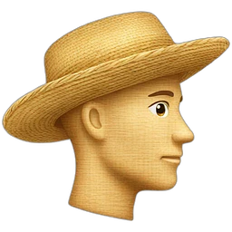 Un homme brain avec un chapeau de paille et un sourire emoji